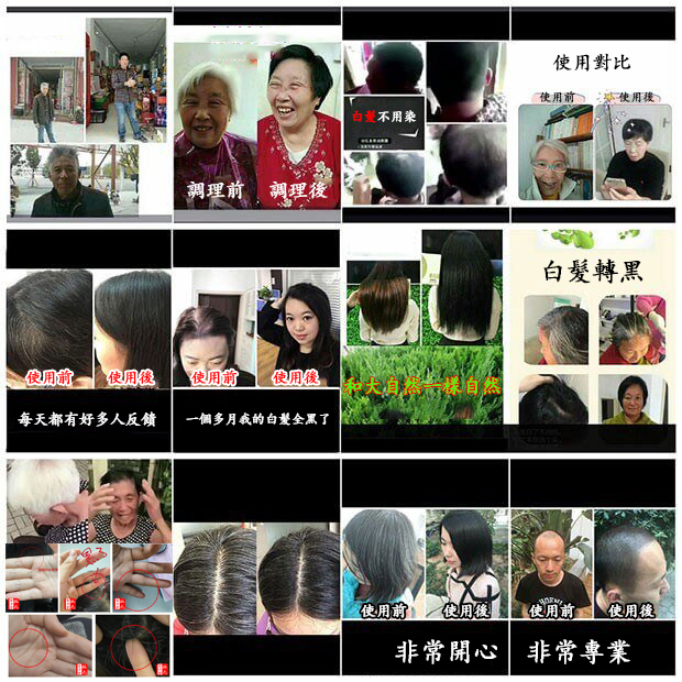 聽說這個「黑髮方」治療白髮效果特別好,我們公司同事劉姊生完孩子之後,這額頭兩邊很多白髮,而且還脫髮,就用的這方子,不到50天,現在白頭髮沒有了,黑髮全都長出來了,就連脫髮的問題也解決了,看上去明顯年輕了七八歲啦。我特地來買一個療程,把我這白髮的問題也給治好,永遠保持年輕漂亮,做個水水的女生!