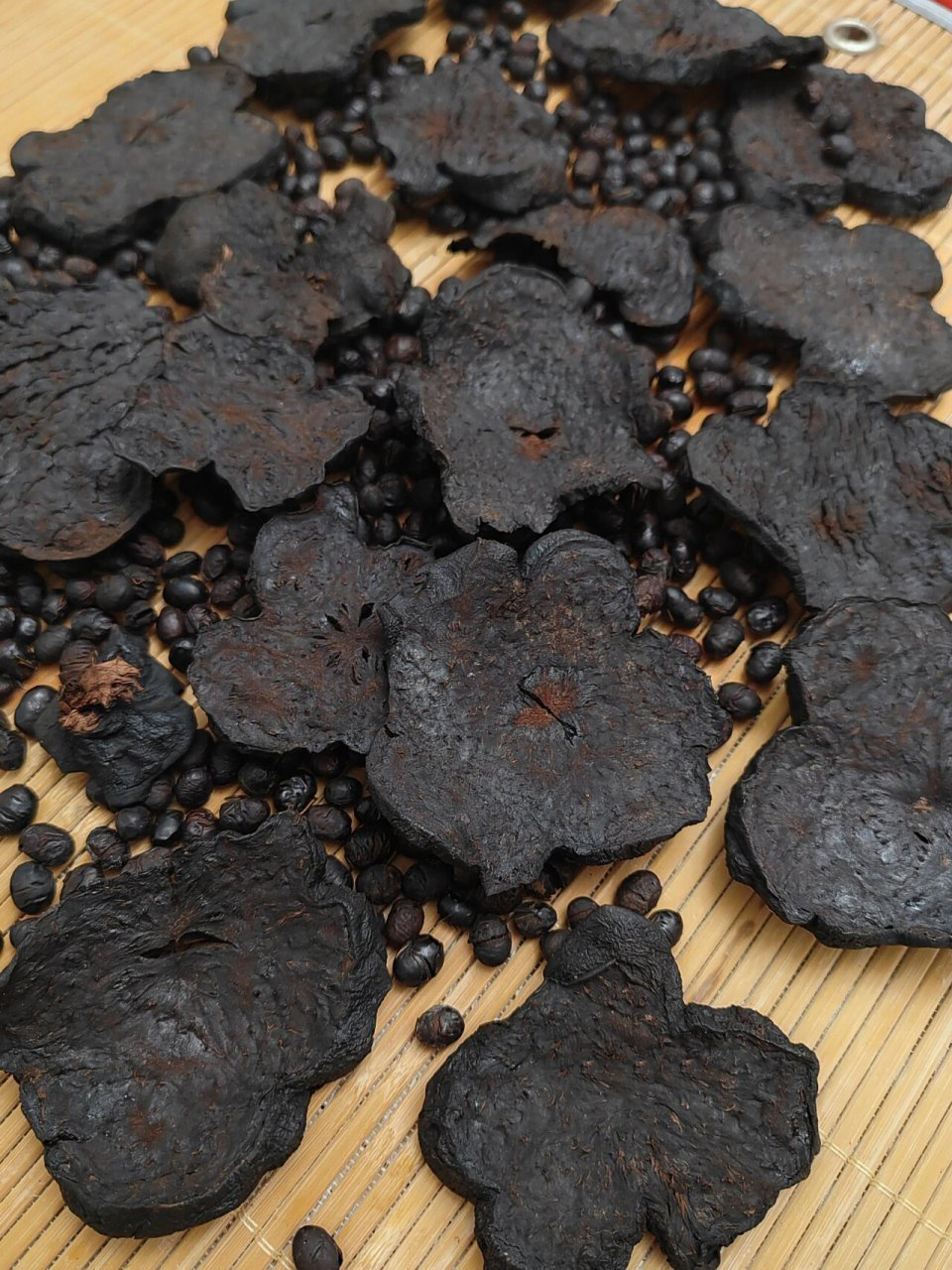 野生茯苓,自己去皮切塊,用山羊奶浸潤、蒸後曬乾